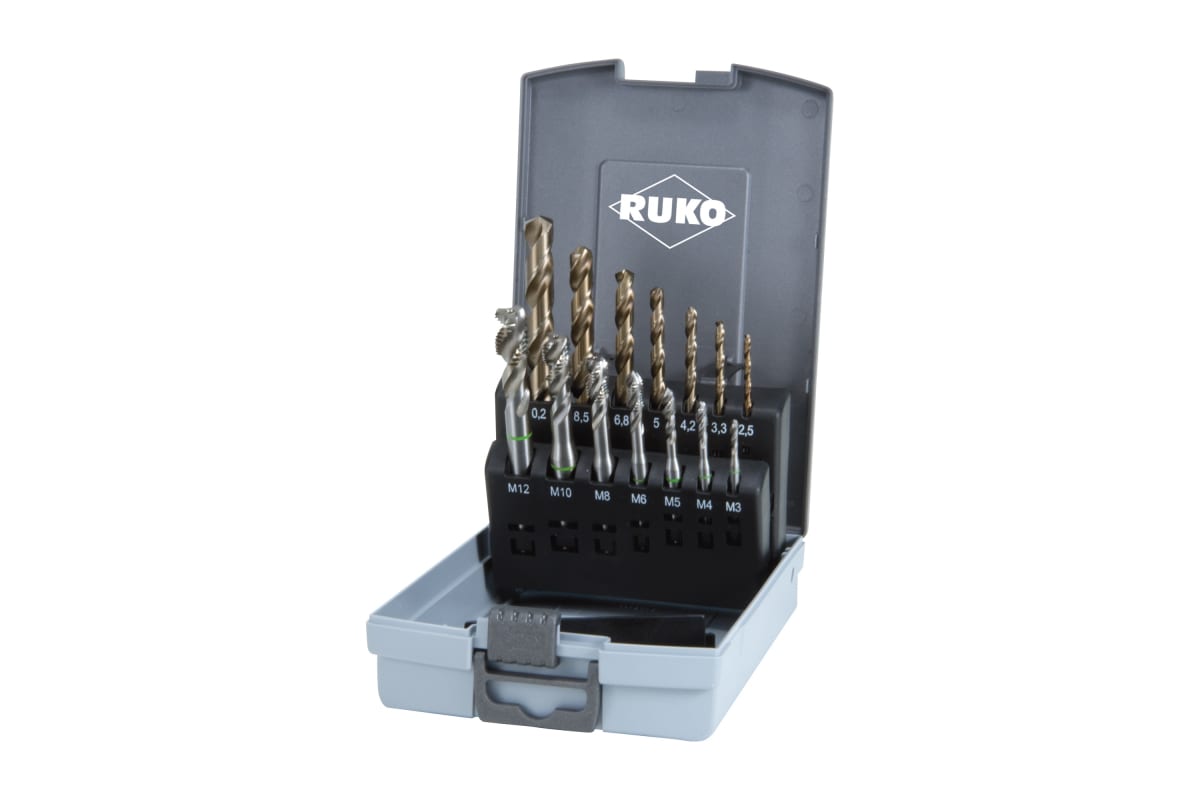 Набор машинных метчиков RUKO HSS-Co5 35 град.M3-M12 со сверлами 245052RO