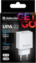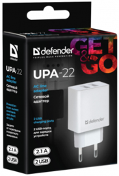 Defender Сетевой адаптер 2xUSB, 2.1А , белый (UPA-22) (83580)