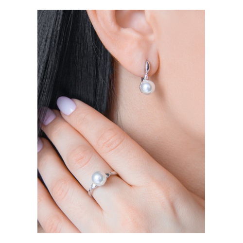 Кольцо из серебра со вставками: Жемчуг Swarovski, 104286-136-0019, размер 18.5 104286-136-0019_18,5