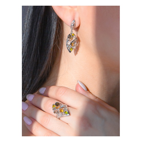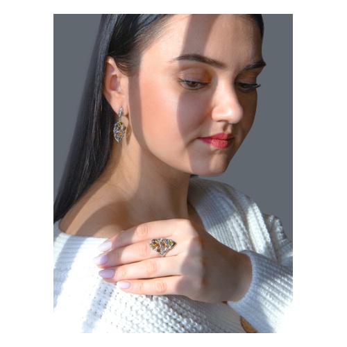 Кольцо из серебра со вставками: Турмалин, Цитрин, Хризолит, 103054-902-0019, размер 18.5 103054-902-0019_18,5