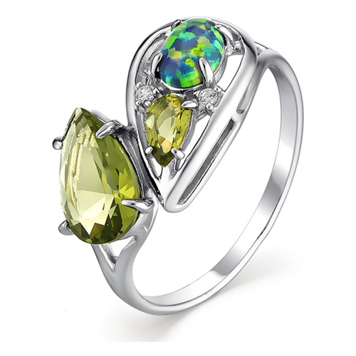 Кольцо из серебра со вставками: Фианит, Турмалин, Опал, 103255-902-0019, размер 19 103255-902-0019_19