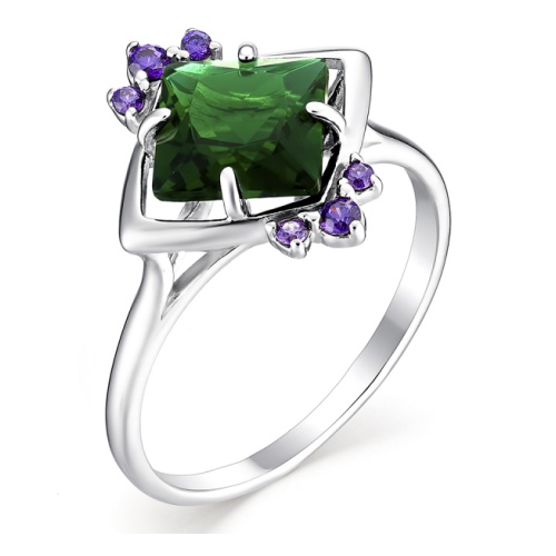 Кольцо из серебра 925 пробы. Изделие родированное. Такое серебряное кольцо представляет собой украшение, которое сочетает в себе как строгость, так и яркость образа. этот двойной эффект получается благодаря вставке из синтетического квадратного изумруда со стороной 8 мм. Вес изделия указан минимальный, может незначительно отличаться от фактического.