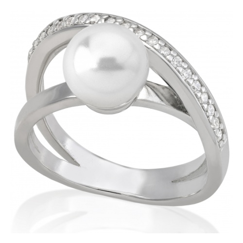 покрытием родием со вставками из органического жемчуга круглой формы белого