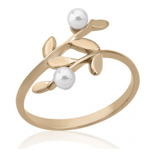 Кольцо, серебро 925 пробы, гальваническое покрытие золотом, белый жемчуг диаметром 5мм