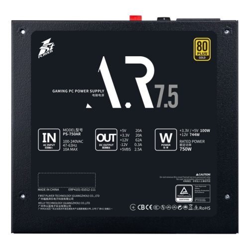 Блок питания 1STPLAYER AR 750W GOLD PS-750ARВзгляните на сертифицированное 80+ Gold, принятое зрелое решение LLC + DC-DC, последняя серия ARMOR обеспечивает эффективность до 90,54% при типичной нагрузке ниже 110 В и эффективность 92,3% при типичной нагрузке ниже 220 В. Индивидуальный интеллектуальный переключатель запуска / остановкиВ режиме вентилятора 0 об / мин интеллектуальная микросхема контроля температуры контролирует внутреннюю температуру. Когда температура составляет 60 °, вентилятор полностью перестает вращаться, пока температура не поднимется выше 60 °. Индивидуальный интеллектуальный переключатель запуска / остановки гарантирует превосходное охлаждение и почти бесшумную работу.