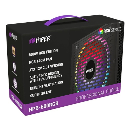 Новейшая серия блоков от компании HIPER для игровых ПК с различными режимами RGB подсветки. Сочетают в себе все последние инновации, высокое качество изготовления, отличный дизайн и эффективность >85% при напряжении 230В. Характеризуются достаточно низким уровнем шума при работе. Выполненная полностью в черном цвете, с большим 140 мм вентилятором, длинными периферийными кабелями и упакованная в стильную ритейловую коробку, модель HPB-600RGB рассчитана на то, чтобы стать бестселлером.