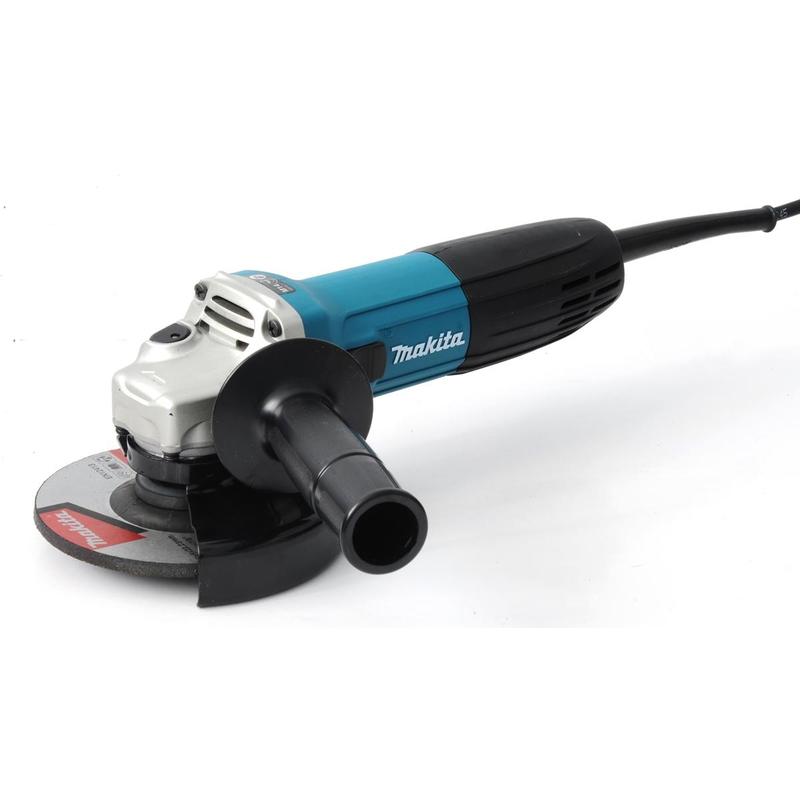 Данный инструмент служит для решения задач по шлифовке и по зачистке поверхностей, а также по резке различных изделий. Он хорошо подходит для работ с разными материалами и достаточно активно эксплуатируется во многих сферах. С выполнением операций описываемая техника справляется быстро и качественно. Небольшой вес и традиционная для продукции этого производителя эргономичность делают агрегат максимально удобным в практическом применении. Диаметр диска у предлагаемого устройства составляет 125 мм. Число развиваемых им за одну минуту оборотов достигает 11000. Мощность двигателя у инструмента имеет величину 720 Вт. Угловая шлифмашина поставляется в комплекте с 5-ю дисками B-45808