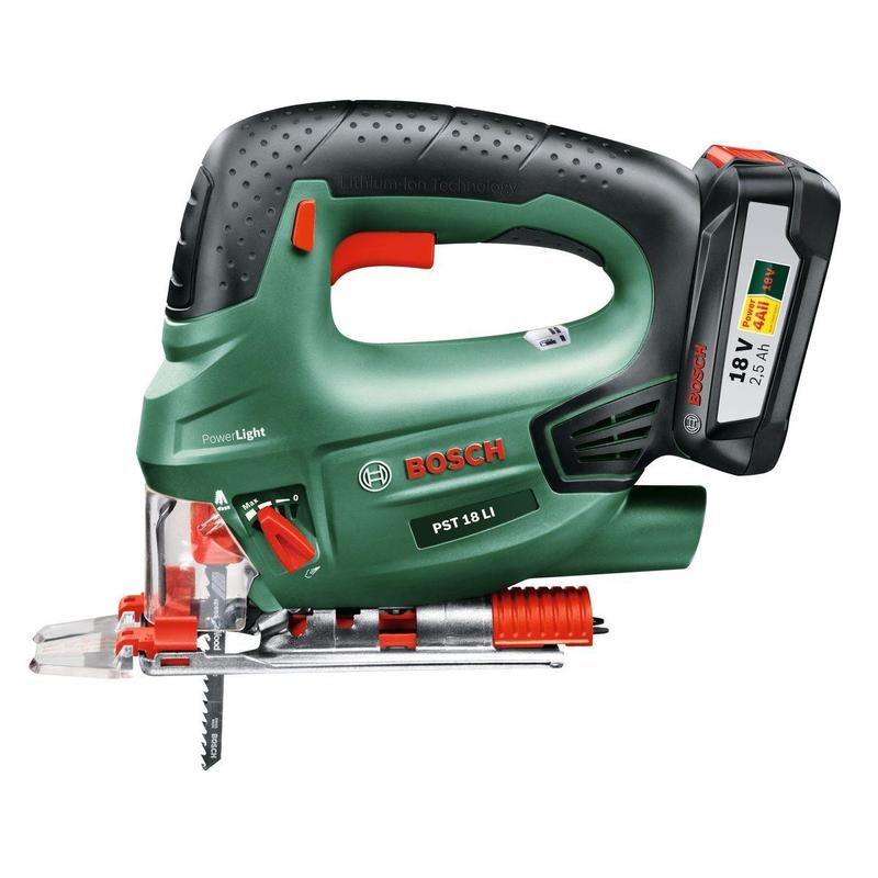 Аккумуляторная лобзиковая пила PST 18 LI выгодно отличается компактным размером и малым весом. Таким образом, этот инструмент отличается превосходной практичностью, оптимальным ведением, а также максимальным удобством в обращении для пользователя. В качестве отдельной принадлежности предлагаются мощный аккумулятор 18 В с литий-ионной технологией и зарядное устройство. Оба изделия могут использоваться с любыми инструментами Bosch 18 В.Дополнительными преимуществами PST 18 LI являются электронное управление Bosch Electronic и встроенная система Bosch Syneon Chip. Bosch Electronic позволяет регулировать частоту ходов с помощью нажимного выключателя — для простого пуска пилы и работы с учетом свойств обрабатываемого материала. Syneon Chip обеспечивает увеличение продолжительности работы на одной зарядке аккумулятора. Кроме того, с лобзиковой пилой PST 18 LI возможно выполнение пропилов в древесине глубиной до 80 мм и резов в стали глубиной до 5 мм.