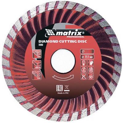 - Прочие особенности и свойства Волнообразная форма металлического основания является наиболее удачной и способствует максимально быстрому удалению продуктов пиления, улучшенному охлаждению и снижению нагрузки на УШМ. Диск используется при сухой резке бетона, железобетона, мрамора.