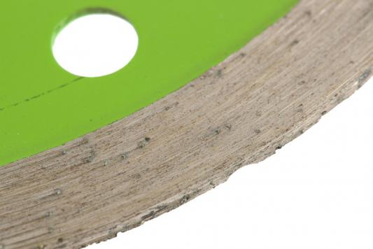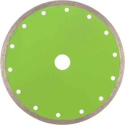 - Прочие особенности и свойства Диск предназначен для мокрого резания, керамической плитки, керамогранита, природного камня. На основание из конструкционной стали, методом холодного прессования, нанесен режущий слой, состоящий из порошков различных металлов и высококачественного синтетического алмаза. Сплошной режущий слой, позволяет получить чистые, ровные края без сколов и трещин.