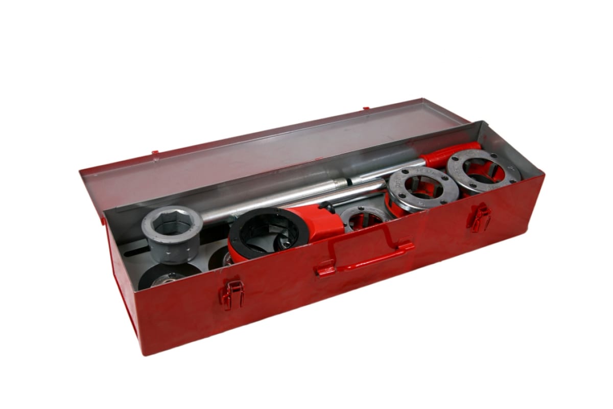 Резьбонарезной набор Gerat 63132 служит для ручной нарезки резьбы на металлических трубах. Все инструменты изготовлены из прочных и износостойких материалов. Набор укомплектован в специальный металлический кейс. Быстросменные резьбонарезные головки имеют точную посадку.