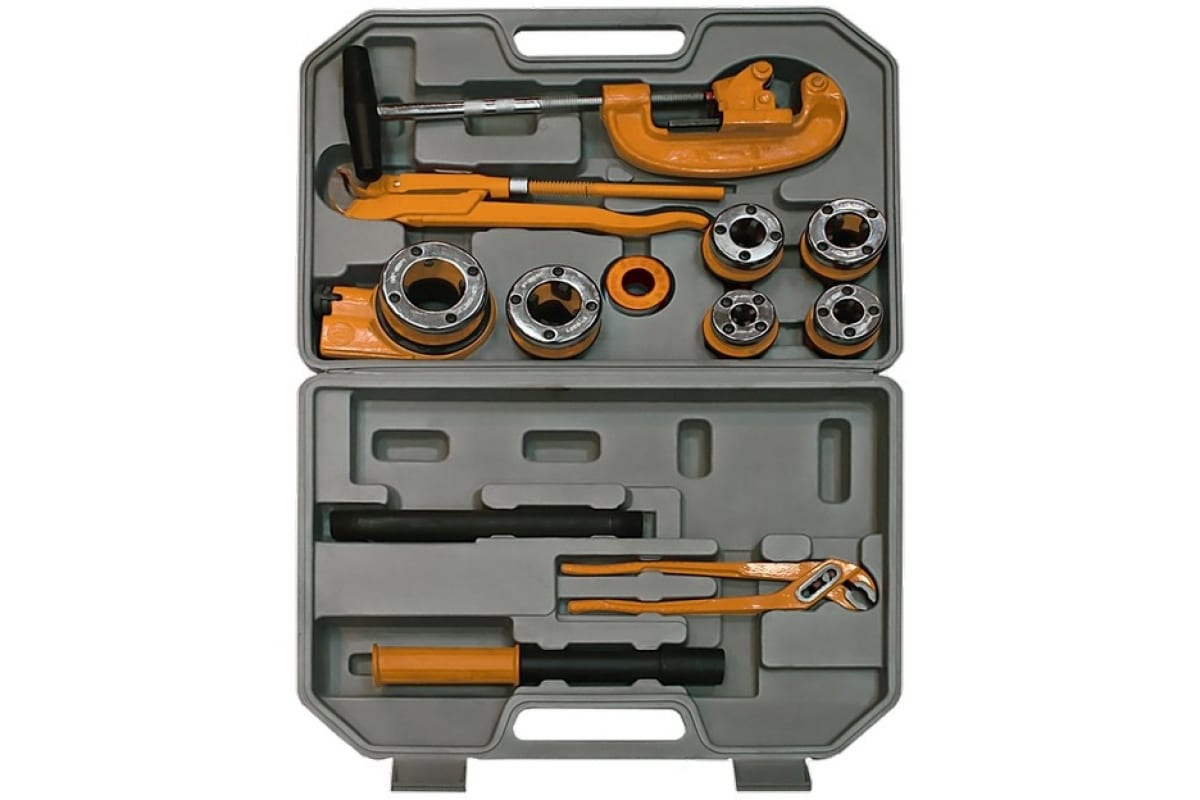 Набор для трубных работ SPARTA 773345 состоит из 13 предметов. Комплектующие данного набора изготовлены из качественной высокоуглеродистой инструментальной стали, что повышает их прочность и значительно продлевает срок службы инструментов.