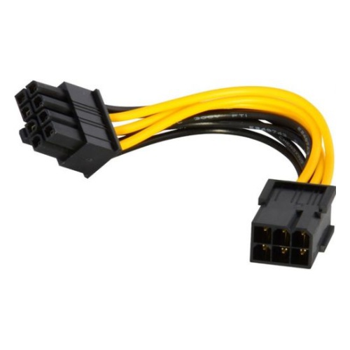 Кабель-переходник питания с одного разъема 6-pin Female на один разъем 8-pin Male. СОВМЕСТИМОСТЬ : видеокарты с восьмиконтактным разъемом питания PCIe