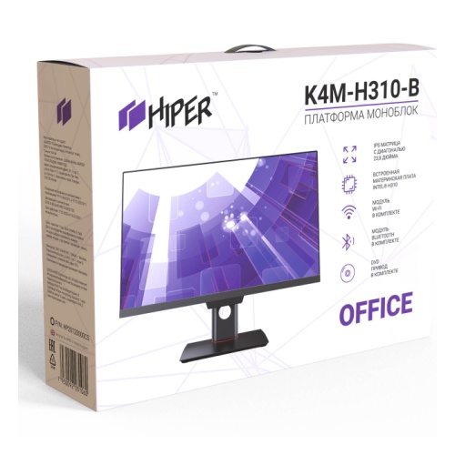 Корпус моноблок HIPER HO-K4M-H310-B 23.8' IPS FHD H310Платформа моноблок HIPER Office K4M диагональю 23,8' с предустановленной материнской платой H310 на поворотном стенде, черного цвета Моноблок установлен на поворотном стенде, с регулировкой: по высоте, наклону, повороту и развороту