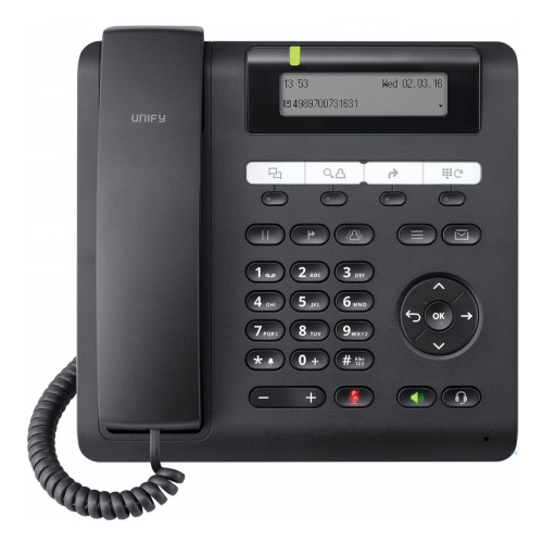 Настольный телефон UNIFY OpenScape Desk Phone CP200T - это телефон для входа в семейство телефонов CP-TDM. Он поддерживает мощный набор функций систем связи OpenScape TDM, предлагает 4 программируемые функциональные клавиши со светодиодной (зеленой) сигнализацией. Эти клавиши предварительно назначаются со списком вызовов, контактами, переадресацией, повторным набором номера. Кроме того, телефон имеет 5 фиксированных функциональных клавиш, 3 со светодиодами (красный или зеленый). Эти клавиши предварительно назначаются с удержанием, передачей, конференцией, настройками, сообщениями. Настольный телефон OpenScape CP200T использует стандартный набор настенного крепления, который уже был представлен с настольным телефоном OpenScape CP200. Акцент на базовых функциях и USB-интерфейсе делает OpenScape Desk Phone CP200T идеальным компаньоном для рабочих мест с поддержкой CTI.
