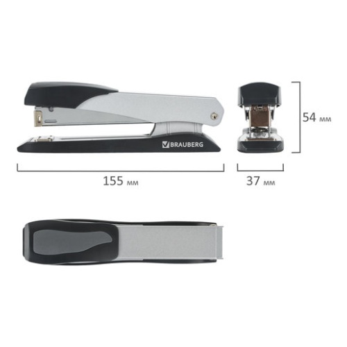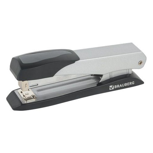 Настольный металлический степлер BRAUBERG "ST-300M". Полнозагрузочный - вмещает до 150 скоб № 24/6.