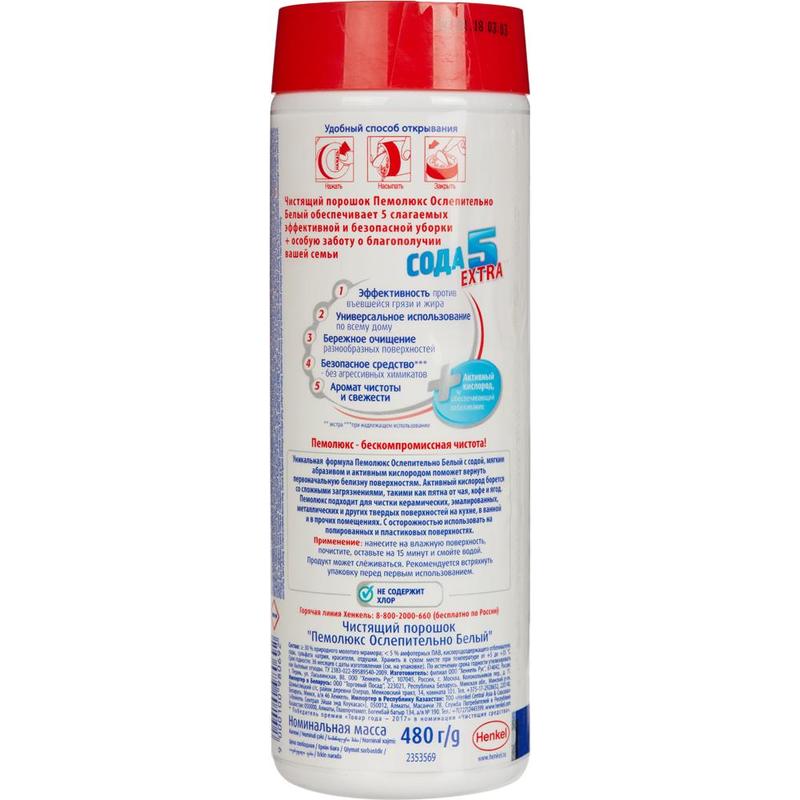 Универсальное чистящее средство Пемолюкс Экстра Ослепительно белый порошок 480 гНазначениеУникальная формула Пемолюкс Ослепительно Белый с содой, мягким абразивом и активным кислородом поможет вернуть первоначальную белизну поверхностям. Активный кислород борется со сложными загрязнениями, такими как пятна от чая, кофе и ягод. Пемолюкс не содержит опасных химикатов и подходит для чистки керамических, эмалированных, металлических и других твердых поверхностей на кухне, в ванной и в прочих помещениях.Способ примененияНанесите на влажную поверхность, почистите и смойте водой. Продукт может слёживаться. Рекомендуется встряхнуть упаковку перед первым использованием.Меры предосторожностиПри попадании в глаза промыть большим количеством воды.Состав: <5% амфотерные ПАВ, кислородсодержащий отбеливатель, отдушка; природный молотый мрамор, сода, сульфат натрия, краситель.Условия храненияХранить в сухом месте. Температурный режим хранения не ограничен.Срок годности: 36 месяцев.