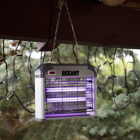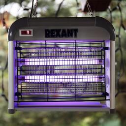 Стационарные уничтожители насекомых REXANT это устройства, которые приманивают к себе насекомых при помощи света определенного спектра и потом уничтожают током. Все устройства этой серии оборудованы специальной защитной сеткой и не могут причинить вред человеку или домашним животным Антимоскитная лампа Rexant- современное экологически безопасное средство по борьбе с комарами, москитами, мошкой, мотыльками и другими летающими видами насекомых внутри помещения. Устройство излучает ультрафиолет и нагревается, тем самым имитирует млекопитающих животных и манит насекомых. Насекомые, подлетая, получают смертельный удар током от металлической сетки под напряжением.