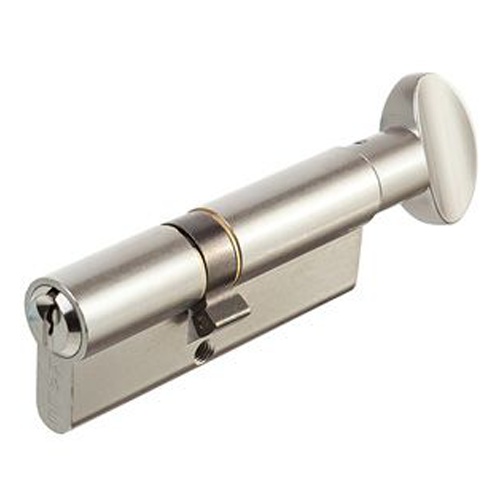 Стандартный цилиндровый механизм с английским ключом и с вертушкой. 6 латунных комбинативных пинов. Секретные пины грибовидной формы. Защитные стержни выполнены из высокопрочной стали, защищающей механизм от разрушения методом высверливания.