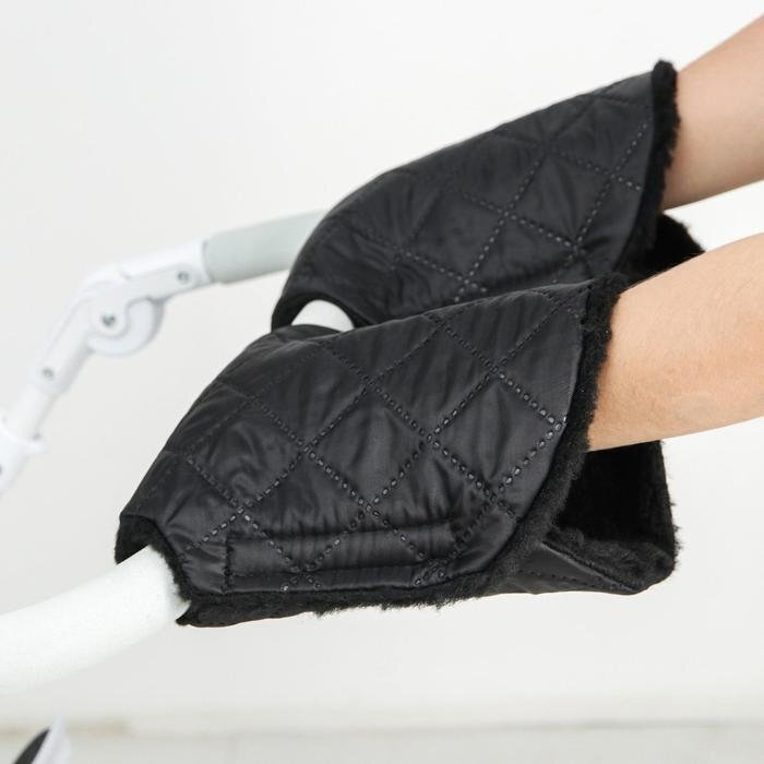 Варежки-муфты на ручку коляски, 2 шт., стеганные, цвет черный