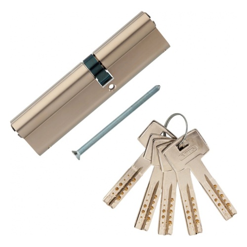 Двухсторонний 12-ти пинный, евро-профильный цилиндр в исполнении ключ-ключ с 5 перфорированными реверсивными ключами и картой безопасности. Цилиндр оснащен всеми надёжными защитами от наиболее распростаненных методов вскрытия и взлома. Запирающая система оснащена запатентованной системой упора ключа как в цилиндре, так и в ключе. Система "антипаника" позволит открыть дверь снаружи даже при вставленном изнутри ключе. Благодаря используемым материалам внутренний механизм практически не подвержен износу в процессе эксплуатации. Получен сертификат европейской лабораторий SKG**.