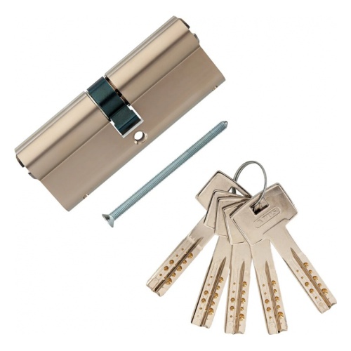 Двухсторонний 12-ти пинный, евро-профильный цилиндр в исполнении ключ-ключ с 5 перфорированными реверсивными ключами и картой безопасности. Цилиндр оснащен всеми надёжными защитами от наиболее распростаненных методов вскрытия и взлома. Запирающая система оснащена запатентованной системой упора ключа как в цилиндре, так и в ключе. Система "антипаника" позволит открыть дверь снаружи даже при вставленном изнутри ключе. Благодаря используемым материалам внутренний механизм практически не подвержен износу в процессе эксплуатации. Получен сертификат европейской лабораторий SKG**.