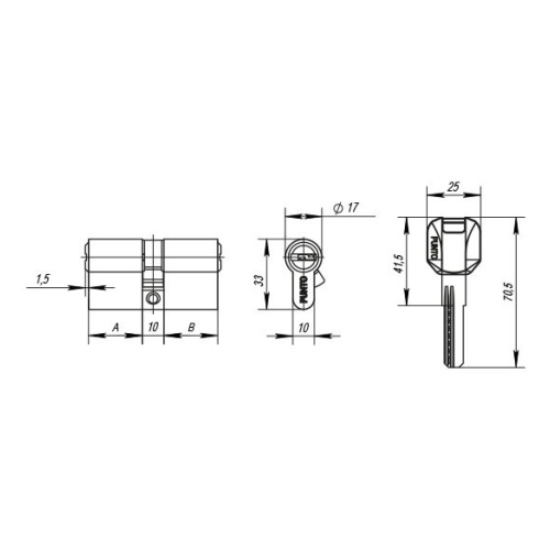 Цилиндровый механизм PUNTO Z400/70 mm (25+10+35) CP хром 5 кл. TD-35247