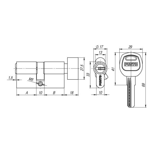 Цилиндровый механизм Punto коллекции SIMPLE LIVING A202 предназначен для установки в корпуса врезных цилиндровых замков для всех типов дверей. Вариант исполнения: ключ-вертушка. Тип ключа: "перфорированный". Материал изготовления цилиндра: алюминий. Материал изготовления ротора: латунь. Количество пинов: 7. Секретность более 78 000 комбинаций. Работоспособность более 100 000 циклов открывания/закрывания. Размер: 70 мм. Цвет: латунь. Комплектация: 5 латунных ключей с пластиковой головкой, крепежный винт 60 мм. Упаковка: картон.