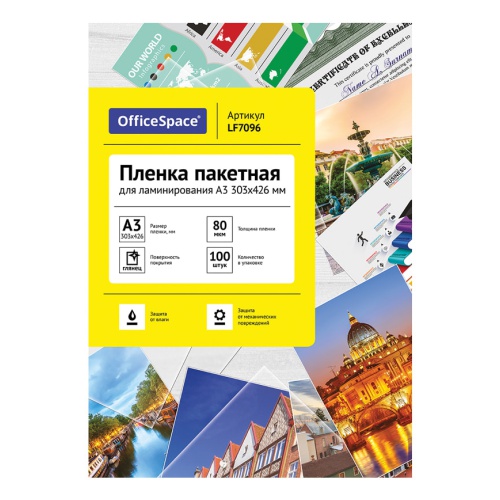 Глянцевая пакетная пленка OfficeSpace размером 303*426мм и плотностью 80мкм прекрасно подходит для ламинирования документов. Предназначена для использования в ламинаторах «горячего» типа. Придает документу жесткость, обладает высокой прозрачностью после ламинации, защищает документ от механических повреждений и воздействия влаги.