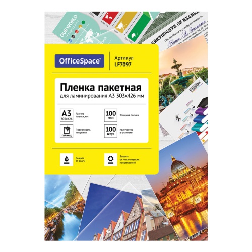 Пленка для ламинирования А3 OfficeSpace 303*426мм, 100мкм, глянец, 100л. 222561РЦ