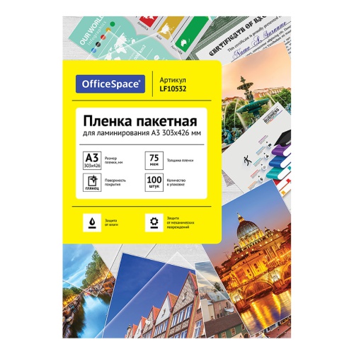 Пленка для ламинирования А3 OfficeSpace 303*426мм, 150мкм, глянец, 100л. 239960РЦ