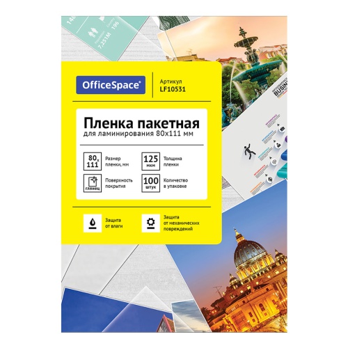 Глянцевая пакетная пленка OfficeSpace размером 80*111мм и плотностью 125мкм прекрасно подходит для ламинирования документов. Предназначена для использования в ламинаторах «горячего» типа. Придает документу жесткость, обладает высокой прозрачностью после ламинации, защищает документ от механических повреждений и воздействия влаги.