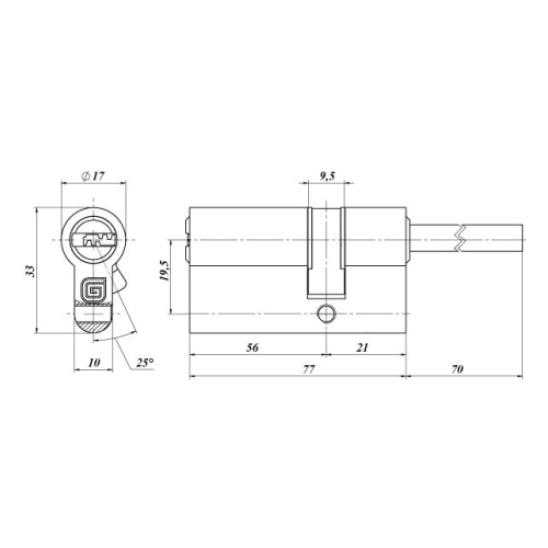 Цилиндровый механизм со штоком ГАРДИАН GB 77 мм (56/21/70SH) G латунь 5 кл. /128:5076/ TD-40831