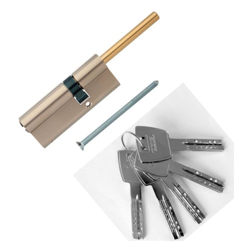 Двухсторонний 12-ти пинный, евро-профильный цилиндр в исполнении ключ- длинный шток с 5 перфорированными реверсивными ключами и картой безопасности. Длина штока - 65мм, диаметр 8мм. Цилиндр оснащен всеми надёжными защитами от наиболее распростаненных методов вскрытия и взлома. Запирающая система оснащена запатентованной системой упора ключа как в цилиндре, так и в ключе. Система "антипаника" позволит открыть дверь снаружи даже при вставленном изнутри ключе. Благодаря используемым материалам внутренний механизм практически не подвержен износу в процессе эксплуатации. Получен сертификат европейской лабораторий SKG**.