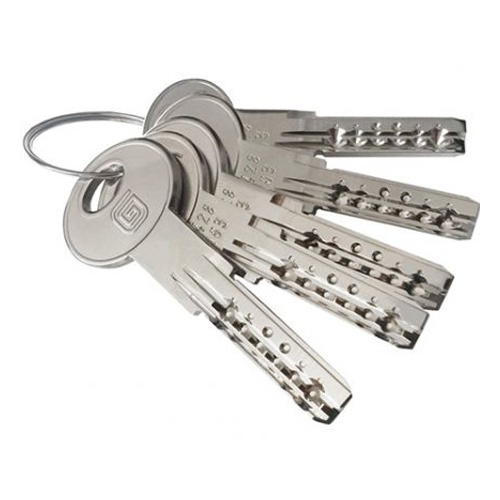 Цилиндровый механизм Гардиан серии GB - Guardian Basic выполнен из латуни, сертифицирован согласно 2ому классу безопасности. 6 латунных комбинативных пинов обеспечивают более 46 000 комбинаций. Работоспособность более 120 000 циклов. Имеет защиту от бампинга (2 плунжера ступенчатой формы), защиту от отмычек (2 плунжера ступенчатой формы), защиту от высверливания (2 закаленных штифта). Тип ключа: перфорированный. Исполнение: ключ-вертушка. Размер: 72 мм (36/36V). Комплектуется 5-ю ключами. Вертушка приобретается отдельно. Цвет: никель.