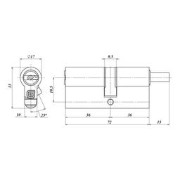 Цилиндровый механизм под вертушку ГАРДИАН GB 72 мм (36/36V) Ni никель 5 кл. /128:4792/ TD-40803