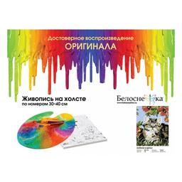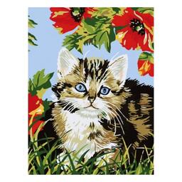 Картина по номерам Белоснежка Котенок в цветах, 30*40 см, холст 009-CE