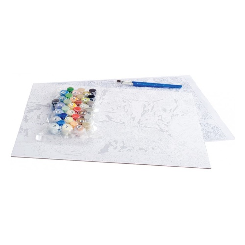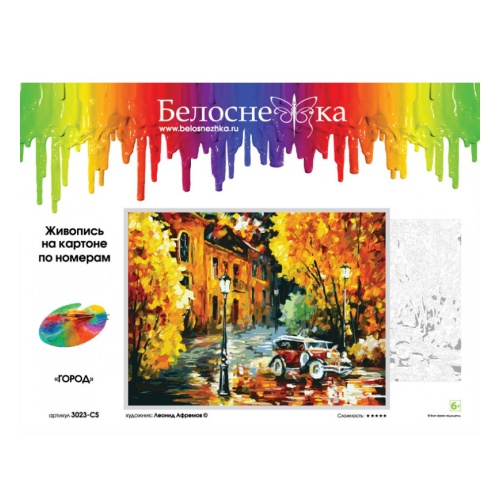 Представляем новую линейку товаров для творчества Белоснежка – живопись на картоне по номерам. Все наборы являются авторскими, разработанными по картинам современных художников, сотрудничающих с нашей компанией. Набор комплектуется акриловыми красками на водной основе, которые не имеют запаха и экологически безопасны. В качестве основы картины используется толстый картон 29,5*39,5 см, толщиной 2 мм, на картон нанесена схема картины с номерами. Следует отметить, что процесс рисования на картоне проще, чем на холсте, кисть легче скользит и акриловые краски превосходно ложатся. Набор упакован в конверт из плотного картона, на обратной стороне упаковки находится блистер с красками. Дополнительную защиту набору обеспечивает лавсановая пленка.