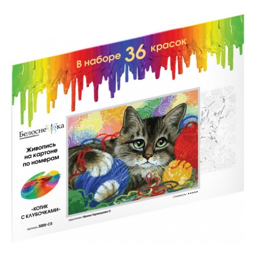 Картина по номерам Белоснежка Котик с клубочками, 30*40 см, картон 3005-CS