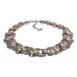 Для кого оно, колье «Маргарет»? Это украшение как никакое другое подойдет мечтательницам и романтичным особам, которые не боятся открыто демонстрировать свою неординарность. Нежно-белые и розово-коралловые камни, украшающие колье, в сочетании с нарочитой объемностью украшения, смотрятся очень интересно.