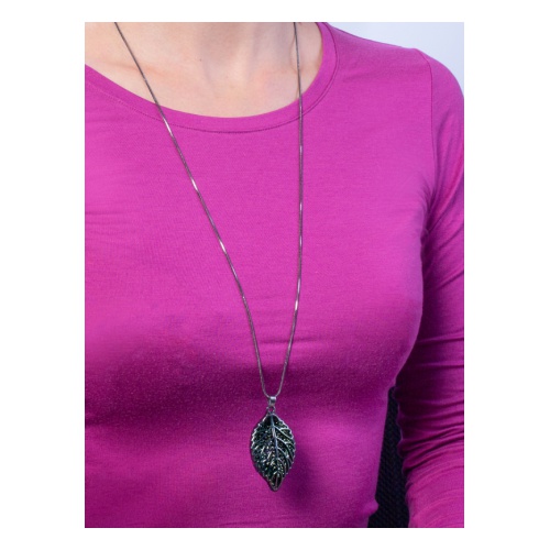 Колье «ЛИСТ» - это роскошное украшение, которое, несомненно, придется по вкусу любительницам природных мотивов. Колье выполнено из серебристого металла в виде простой длинной цепочки и небольшого кулона-подвески, повторяющего естественные очертания листа и украшенного сверкающими кристаллами.