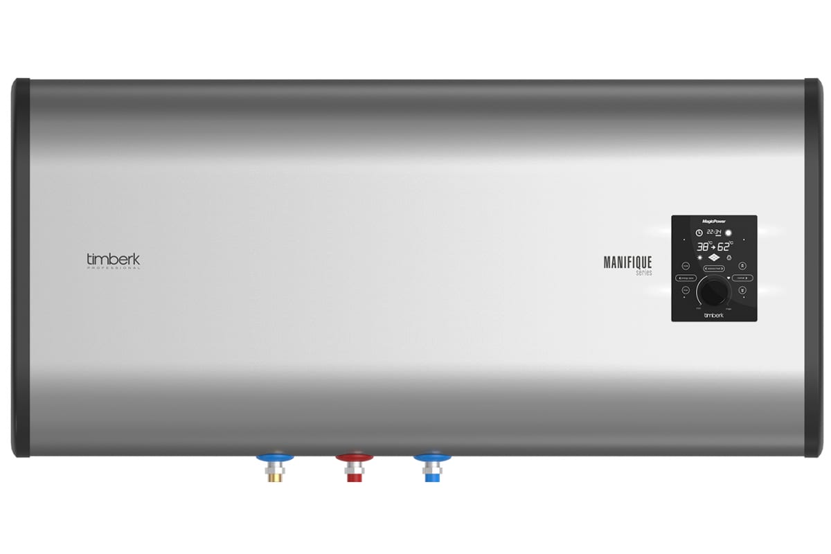 Накопительный водонагреватель Timberk SWH FSM6 80 H - прочный и надежный в работе электрический аппарат для нагрева холодной проточной воды. Корпус, резервуар и все внутренние элементы изготовлены из прочного и качественного материала - нержавеющей стали SUS 304 с толщиной стенок 1,2 мм. Нагревательный элемент имеет сдвоенную конструкцию, выполнен из меди и дополнительно покрыт защитным слоем. Магниевый анодный стержень увеличен, он защищает внутренний бак от разрушения коррозией и значительно сокращает отложения накипи. Включение/отключение и регулировка режимов работы производится при помощи сенсорного дисплея или пульта управления.