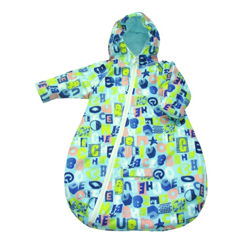 Верх конверта выполнен из качественной водонепроницаемой и ветрозащитной ткани с ярким принтом.