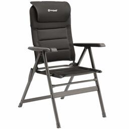 Кемпінговий стілець Outwell Kenai поєднує в собі швидковисихаючу набивку з сітчастою тканиною Textilene стильного чорного кольору. Стілець має регульований знімний підголівник і покритий водовідштовхувальним матеріалом, щоб не допустити вбирання води наповнювачем, якщо раптом потрапить під дощ.