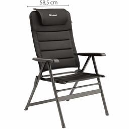 Кемпінговий стілець Outwell Grand Canyon поєднує в собі швидковисихаючу тканину Textilene стильного чорного кольору. Стілець має регульований знімний підголівник і покритий водовідштовхувальним матеріалом, щоб не допустити вбирання води наповнювачем, якщо раптом потрапить під дощ.