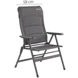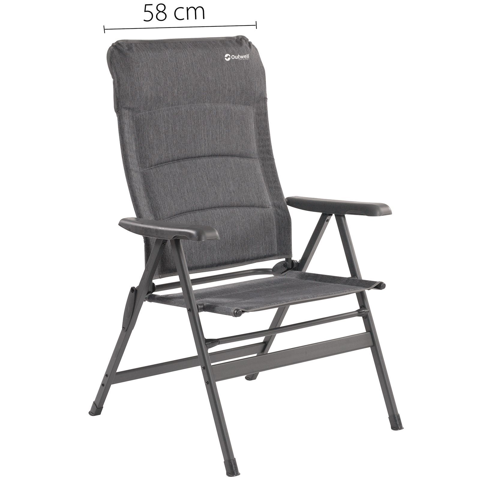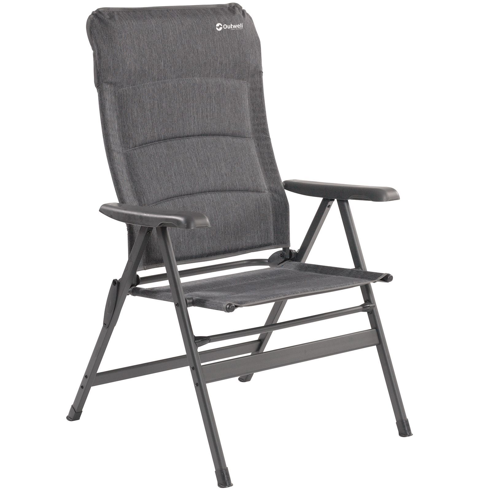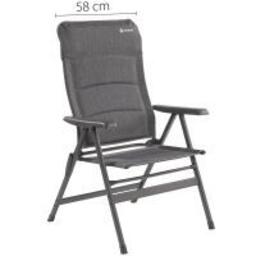 Кемпінговий стілець Outwell Trenton має дуже широке сидіння і високу спинку з сімома положеннями для максимального комфорту. Стілець витримує навантаження до 200 кг завдяки легкому, високоміцному алюмінієвому каркасу. Ергономічні підлокітники і вбудована знімна подушка для шиї роблять цей стілець прекрасним вибором для кемпінгового табору.