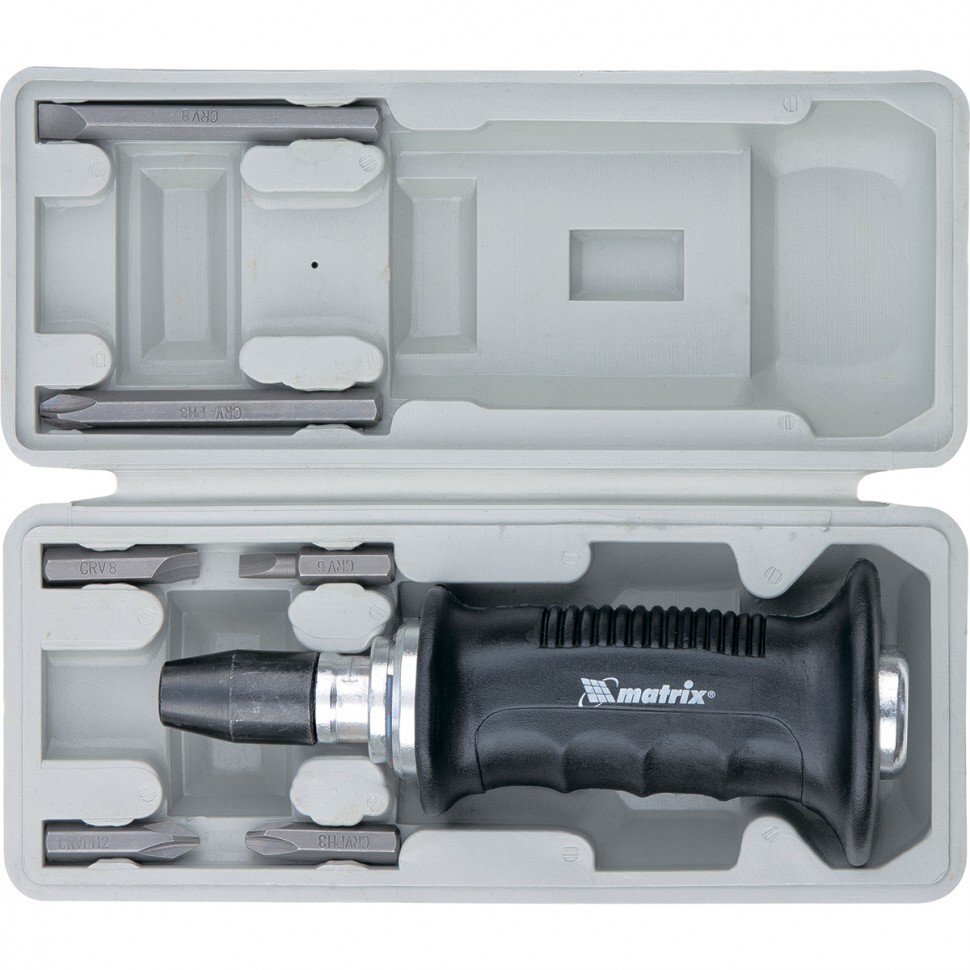 Отвертка ударно-поворотная 1/2, набор бит, 6 шт, черная ручка Профи, пластиковый бокс Matrix