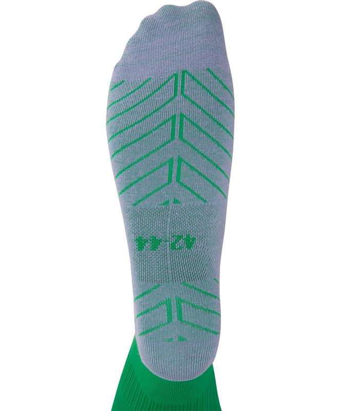 Футбольные гетры с хлопковым носком обеспечивают надёжное сцепление с подошвой. Динамическая поддержка свода стопы и дополнительная амортизация в ключевых зонах обеспечивают плотную и удобную посадку на ноге. Улучшенные эргономические свойства резинок для максимально комфортной игры. В структуру ткани вплетены специальные волокна, которые имеют различную толщину, что обеспечивает впитывание и отвод пота на наружный слой, где происходит его испарение. Зональная амортизация позволяет снизить давление. На контрастной полоске расположен логотип бренда.