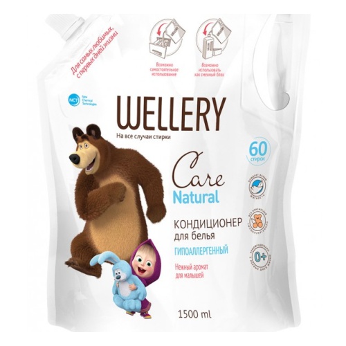Кондиционер-ополаскиватель WELLERY Care Natural "Маша и Медведь" для детского белья, гипоаллергенный, 1,5 л. 4640015110965