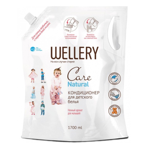 Гипоаллергенный WELLERY Care Natural кондиционер для детского белья 1,7 л.